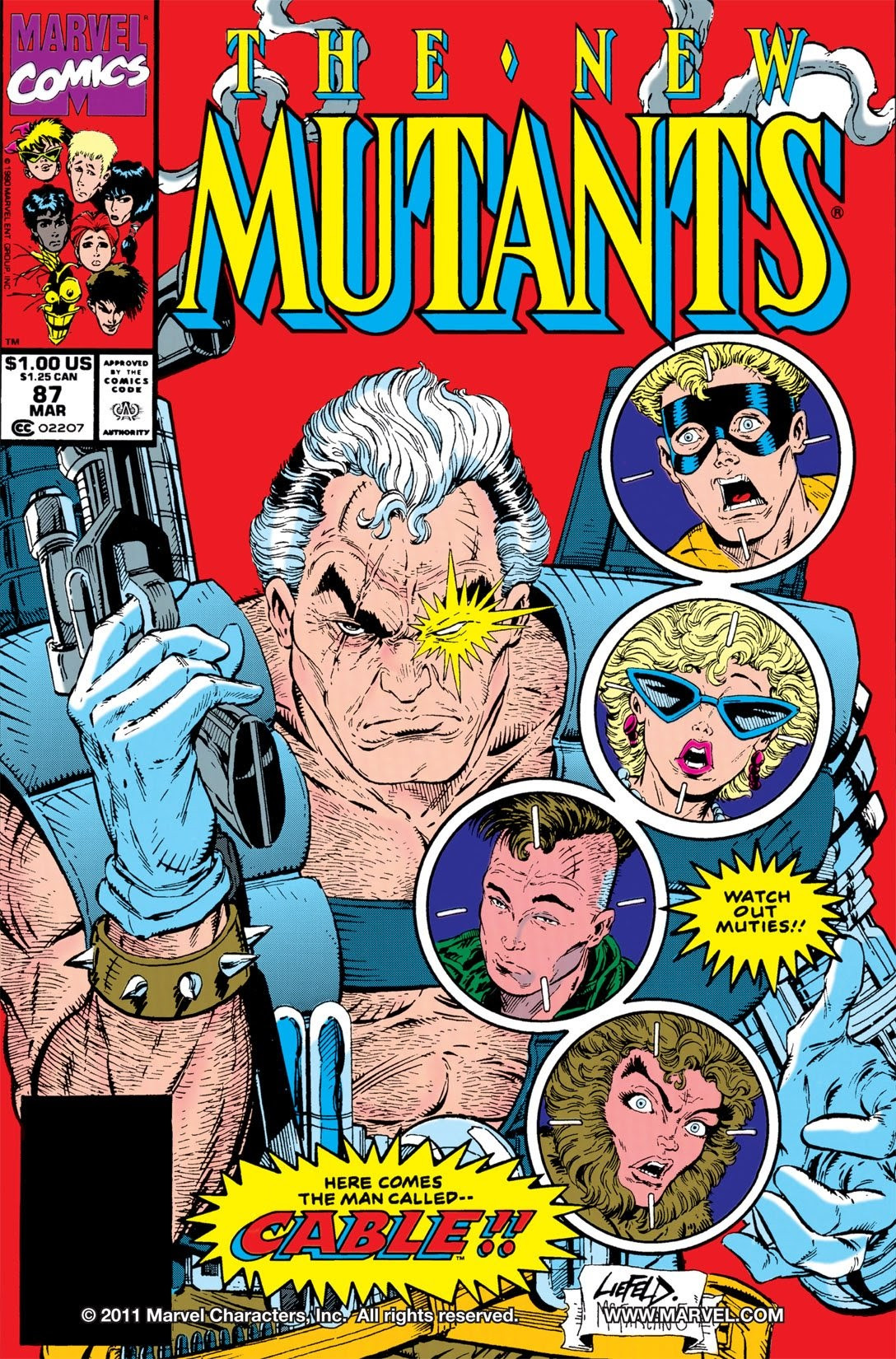 Cable was a character who, like Deadpool, first appeared in Marvel's New Mutants[3] title in the early 1990s. (Like Deadpool and many heroes from that era, his uniform was inexplicably laden with pouches. What was he keeping in there? Pennies? Dental floss?)