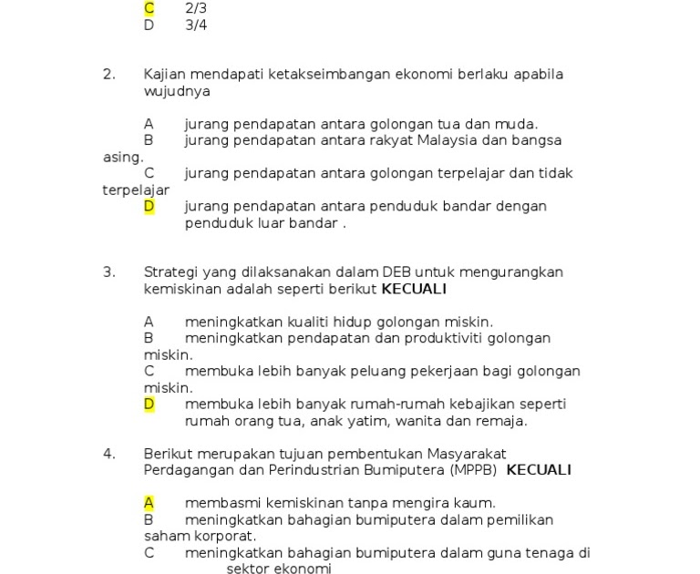 Soalan Objektif Ekonomi Tingkatan 4 - Kuora A via kuoraa.blogspot.com