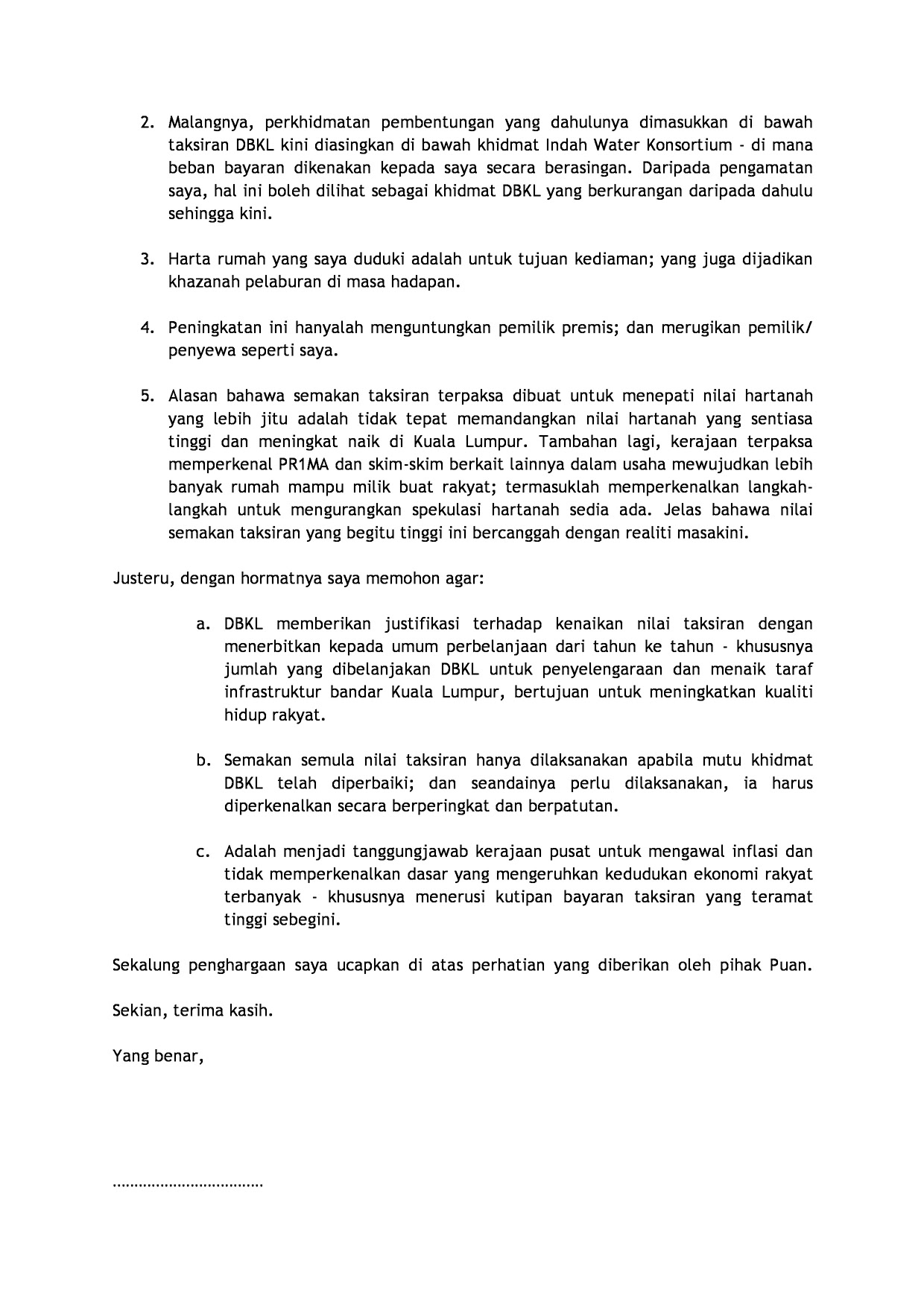 Surat Rayuan Pengurangan Cukai Taksiran - Selangor I via selangori.blogspot.com